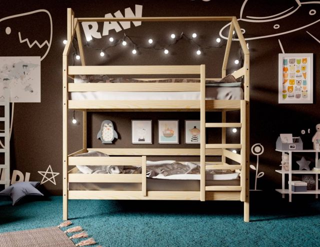 Кровать-домик двухъярусная 80*190 без покраски
